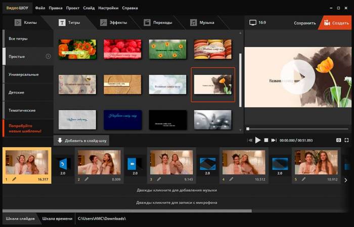 ВидеоШОУ позволит без труда создать видео для YouTube в домашних условиях и сделать его качественным, стильным и цепляющим. Скачайте редактор и шагните в увлекательный мир блоггинга!