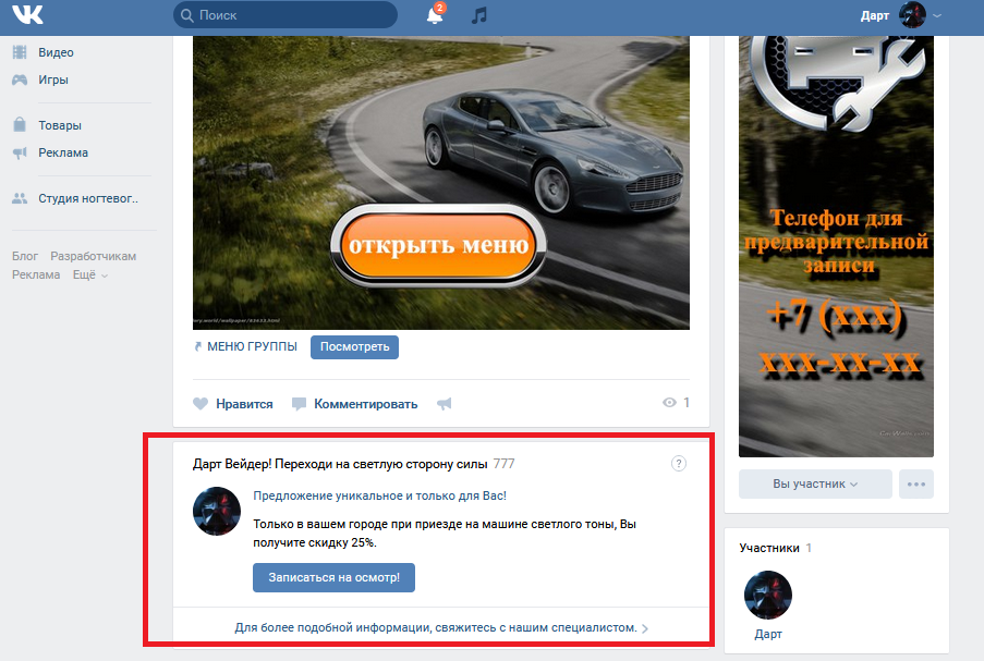 По умолчанию он будет виден только администратору, то есть вам. Чтобы посетители или подписчики увидели этот персональный блок, необходимо сделать следующее: