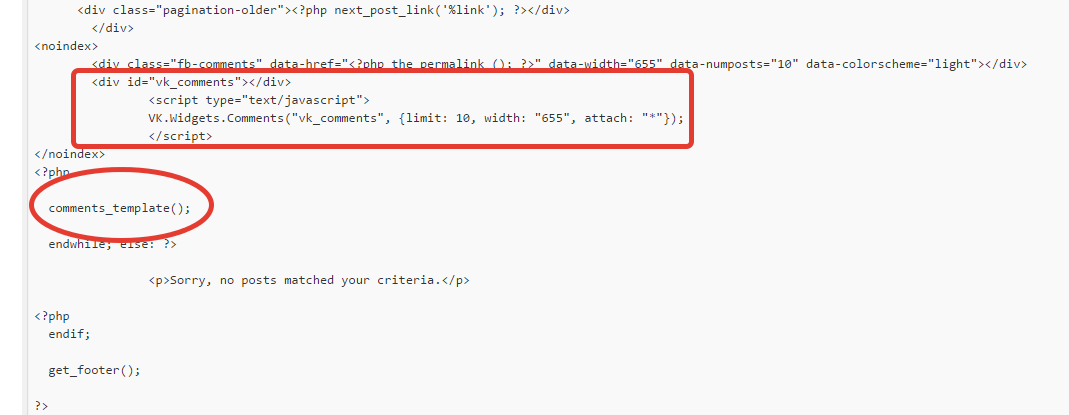 Вторую часть кода (рис.3) необходимо вставлять в файл single.php вашей темы, в то место, где вы хотите видеть виджет комментариев. Я вставил его над стандартными комментариями (рис.4)