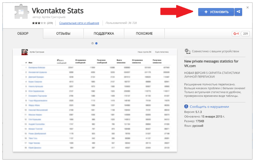 Установить расширение VK Messages Visual Statistics для Google Chrome можно следующим образом:
