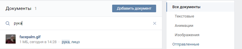 В разделе документы будут отображаться все когда-либо загруженные или добавленные к себе файлы, в том числе GIF анимация.