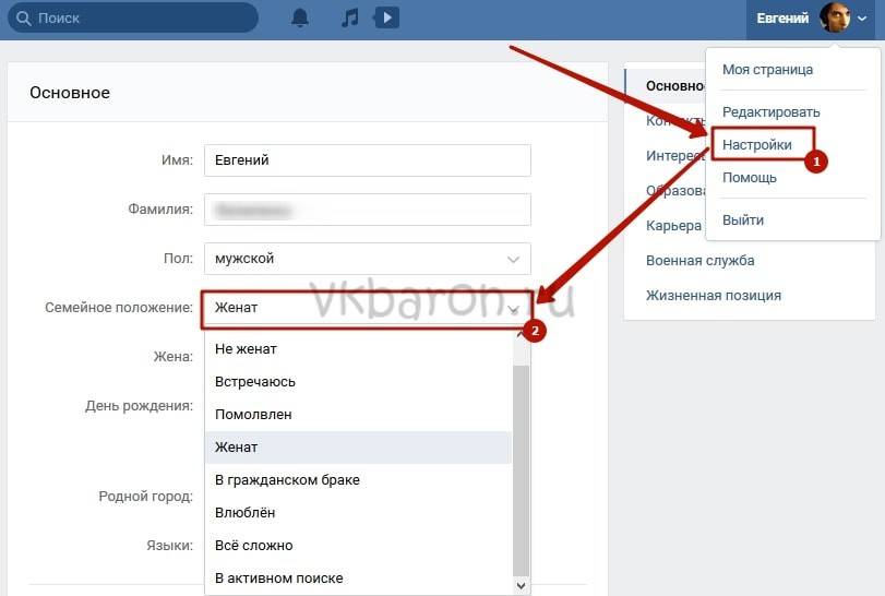 Семейное положение в ВК показывает,