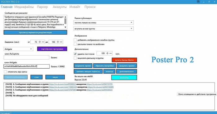 - одновременную отправку постов в группы, аккаунты и сообщества;