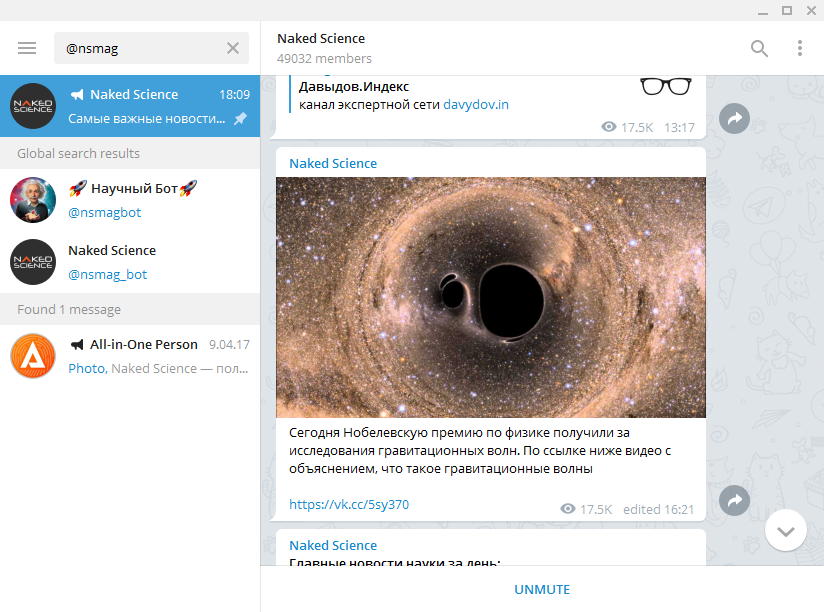 - 13 @nsmag, или Naked Science, ~49k участников