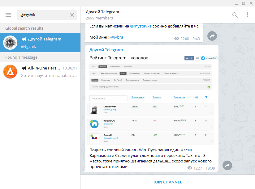 - 17 @tgshik, или Другой Telegram, ~2,6k участников
