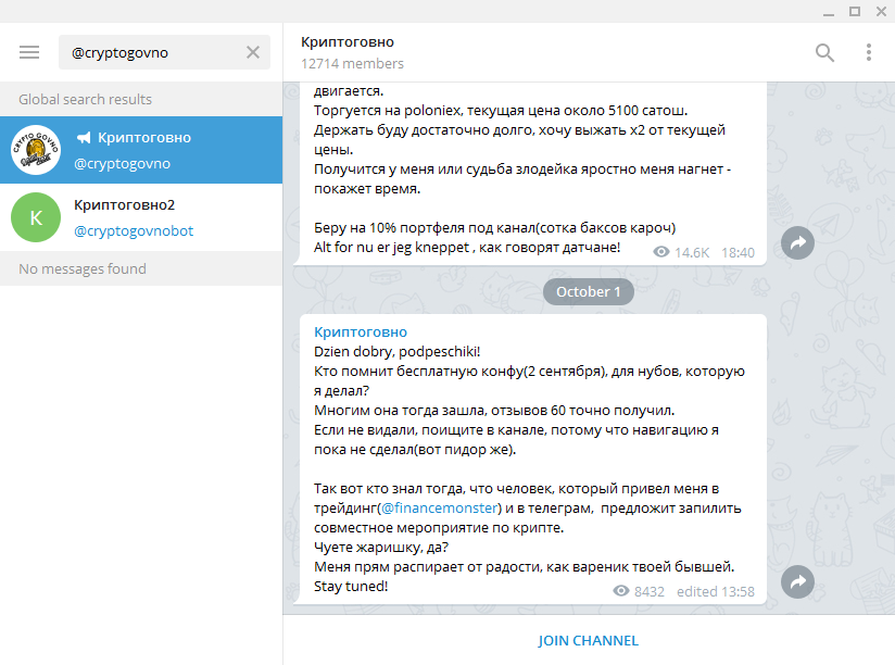 - 16 @cryptogovno, ~12k участников