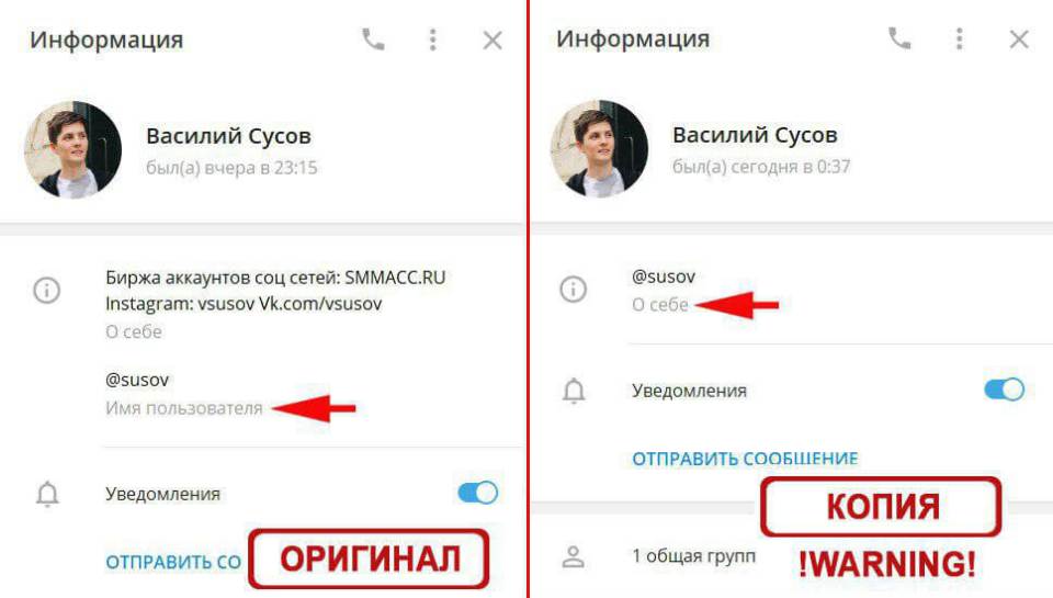 Например, при проведении сделки продажи или покупки канала через гаранта. Покупатель, он же мошенник, создает общий чат с продавцом и гарантом для проведения сделки. На определенном этапе он быстро удаляет гаранта из чата и добавляет его поддельный аккаунт. Обычно это устраивают на решающем этапе сделки, чтобы продавец с гарантом не успели ничего заподозрить.