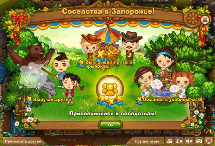 Ваши друзья из френдлиста, которые тоже играют в «Запорожье», станут вашими соседями. К ним можно будет ходить в гости, помогать немного по хозяйству, обмениваться предметами из инвентаря.
