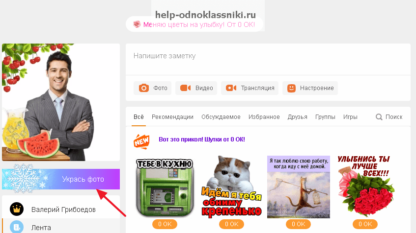 - 7 Как украсить свой профиль в «Одноклассниках» с компьютера?