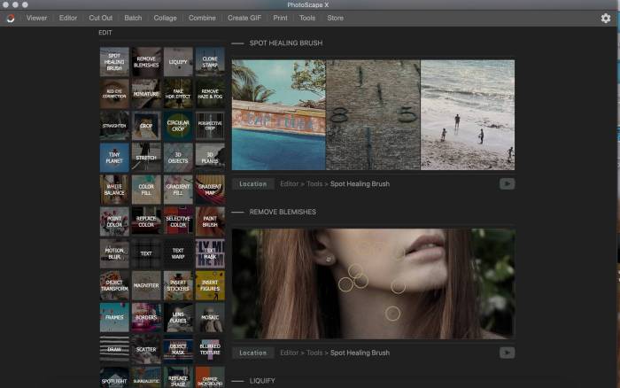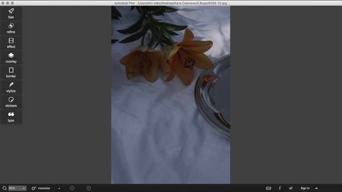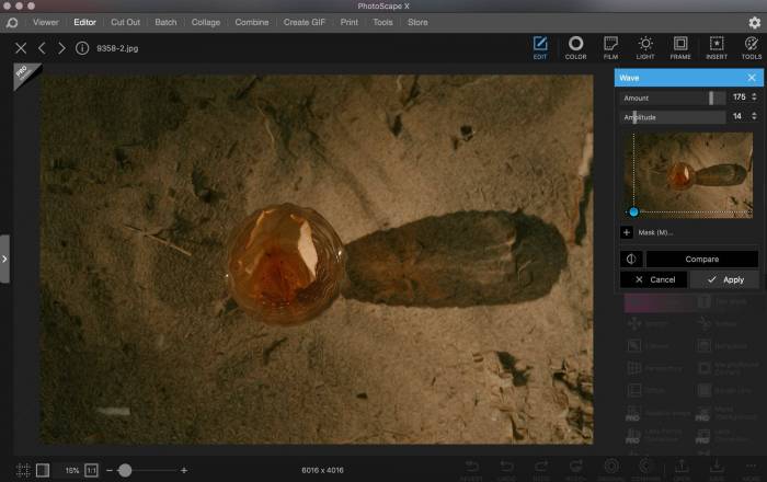 Программа отличная замена Фотошопу для обработки фото. На приветственном окне наглядно показаны действия различных инструментов. Достаточно тыкнуть на нужный. Для креатива: можно добавить блики как на пленке и обработать фото так, будто объект под водой.