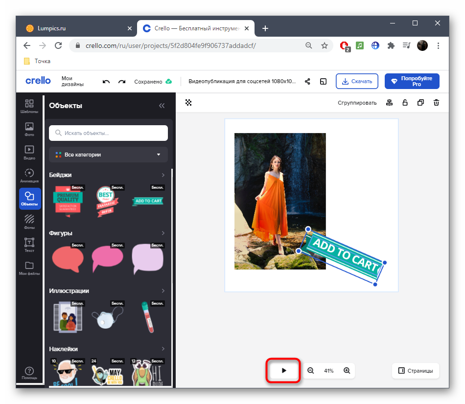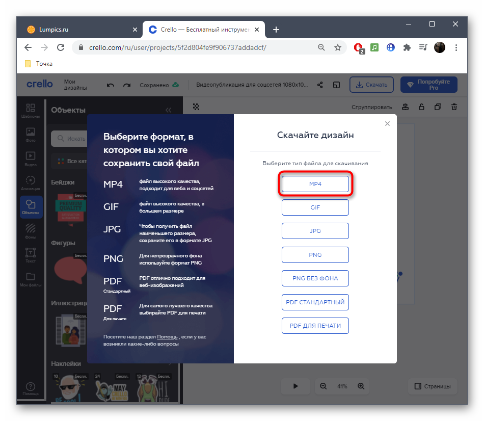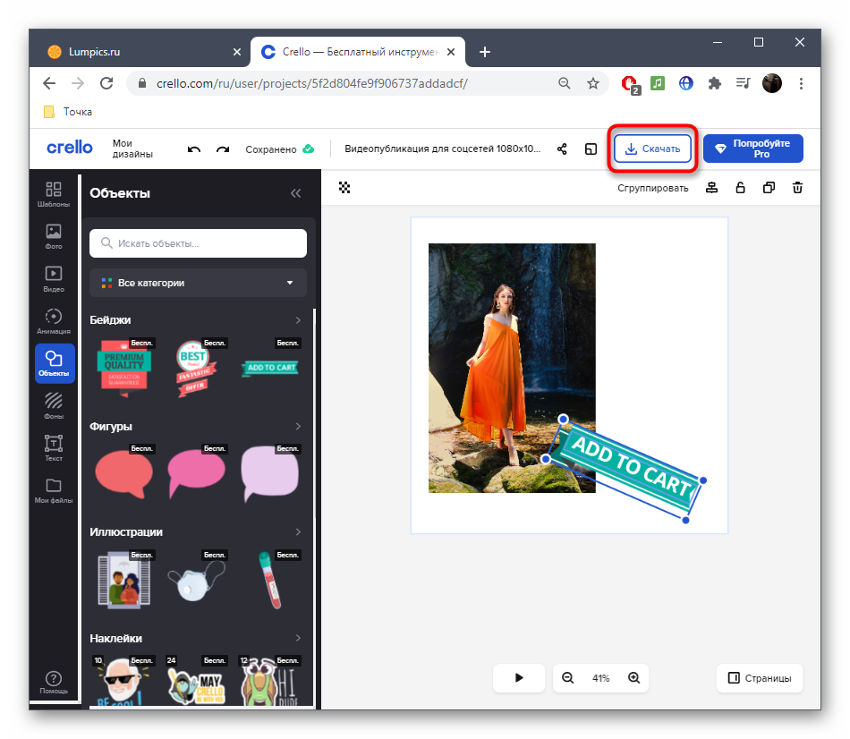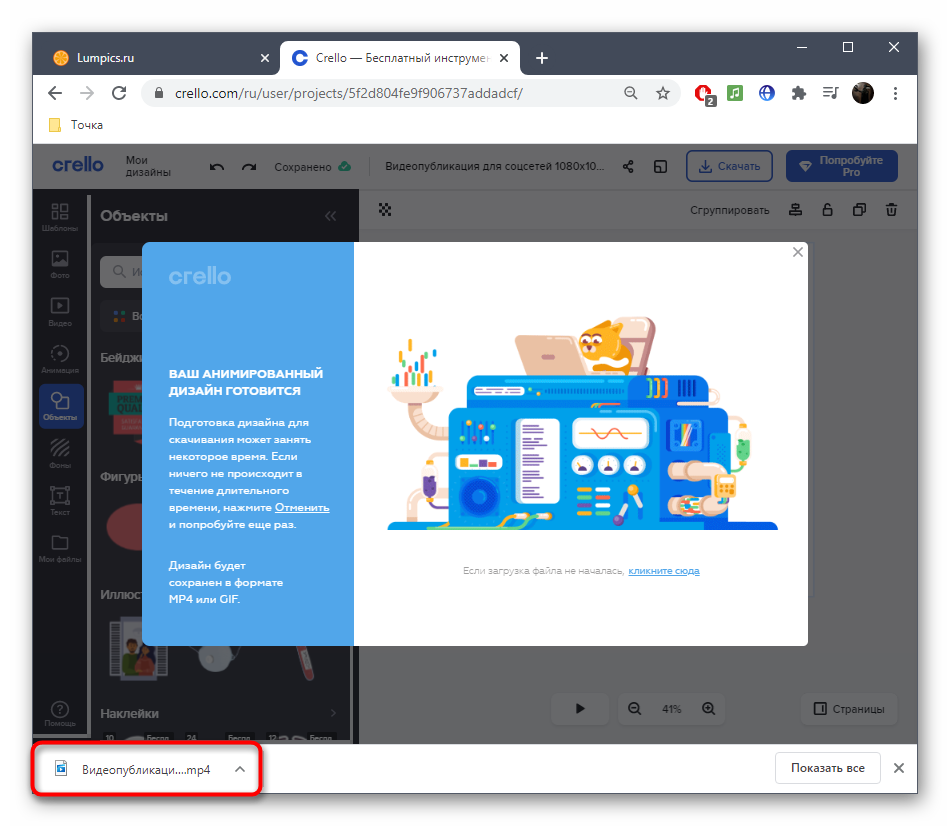 Как только ролик будет готов, нажмите «Download».