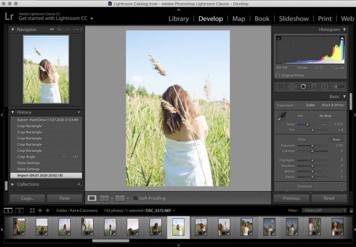 Интерфейс Lightroom и фото до обработки